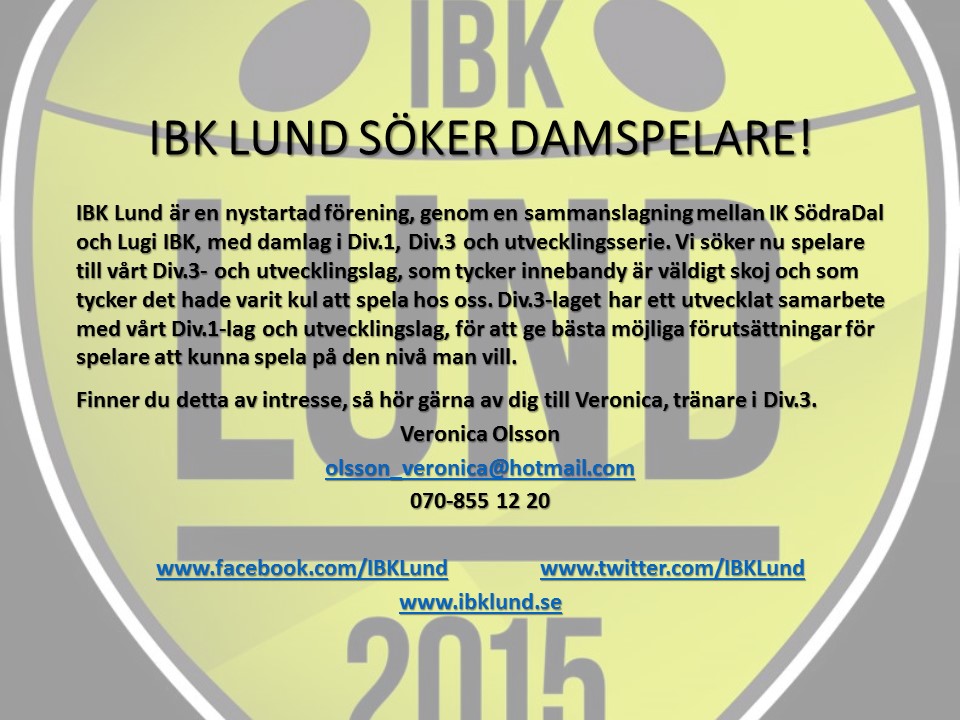 IBK Lunds nya Facebook-sida och Twitter!