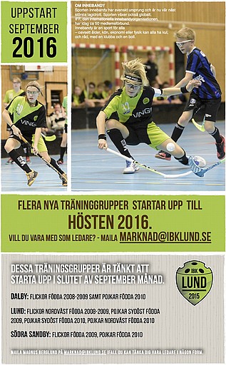Till hösten planerar IBK Lund att starta upp flera nya träningsgrupper, i Lund, Dalby och Södra Sandby. Dessa grupper är följande: