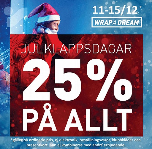 Mellan onsdagen den 11/12 till och med söndagen den 15/12, har alla medlemmar i IBK Lund 25 procent rabatt på ordinarie priser i butiken hos Intersport Nova Lund. Så passa på att köpa era julklappar denna veckan hos Intersport. Denna rabatt gäller