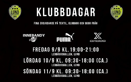 En ny säsong nalkas och snart är våra lag åter igång med träningar och matcher. Det är alltså perfekt läge för att kitta upp sig inför säsongen. Därför kommer föreningen, tillsammans med våra samarbetspartners Innebandyesset, Puma och Oxdog, att ha två klubbdagar på lördag och söndag med fina erbjudanden.