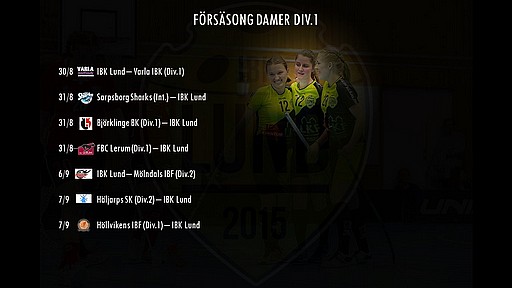 Först ut är klassiska Björnslaget i Göteborg mellan den 30/8-1/9. här kommer laget att få möta både Div.1- och Div.2-lag. Dessutom väntar norska Sarpsborg Sharks under lördagen. Helgen därefter ska laget spela Höllviken Pre Season Challenge. Här bjuds det både på Div.1- och Div.2-motstånd. Har ni vägarna förbi, så kom och se laget förbereda sig inför kommande säsong!